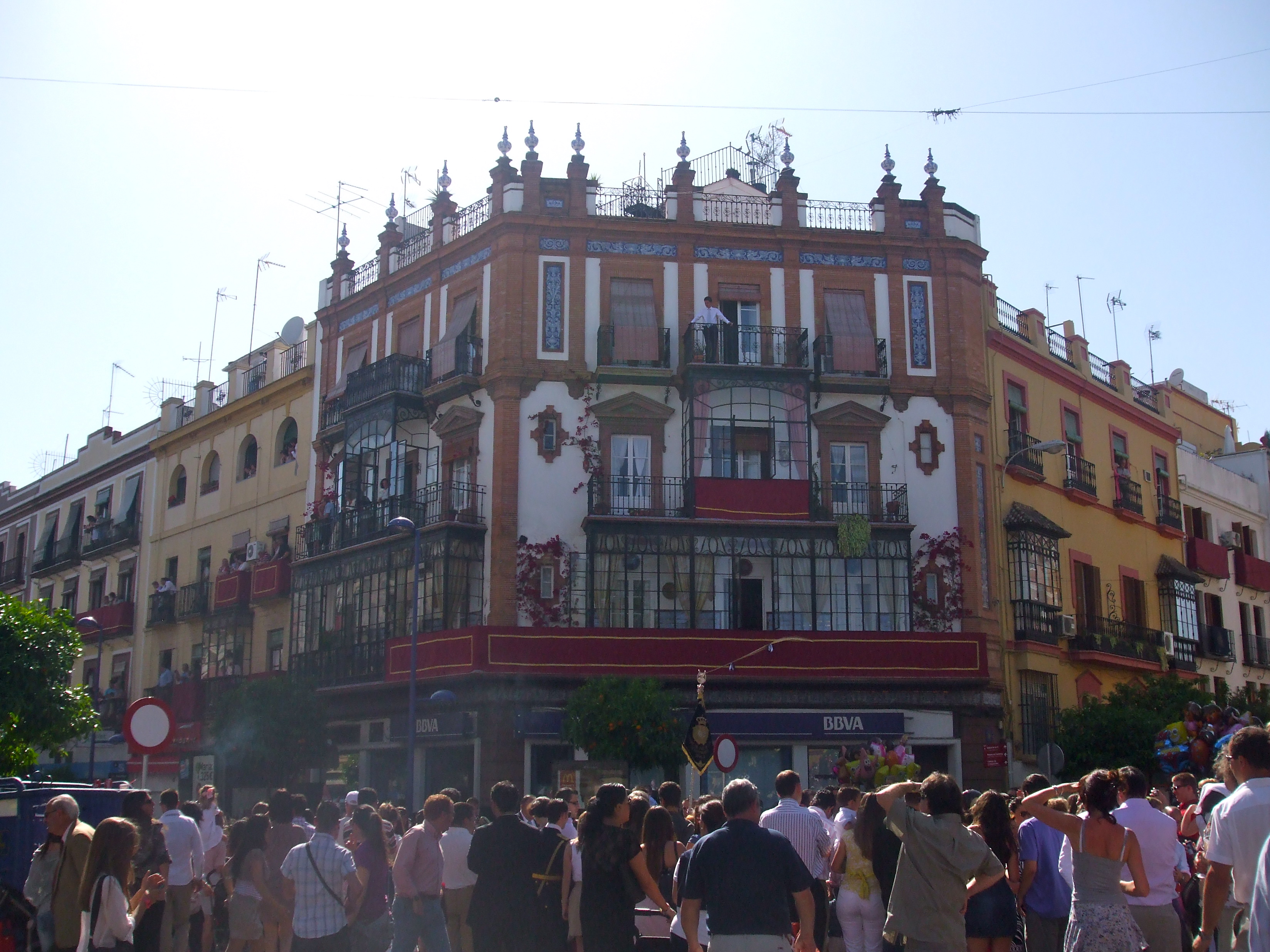My professor had forebodingly warned that trying to get to Sevilla during Semana Santas (the holy week before Easter, or Pascua) to catch their famed processionals would require pre-planning and cash for the likes of trying to get to London for the Royal Wedding. We hadn’t thought that we would actually catch the craze just a weekend earlier on Palm Sunday. Getting to Sevilla Wednesday night, we also didn’t realize that our surprisingly-affordable 4-star hotel was about a half-hour bus ride outside of the city, which put a damper on our plans to go out on the town, but we made the most of our days before running to catch the last bus back.