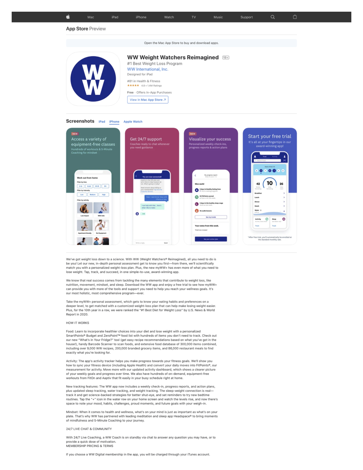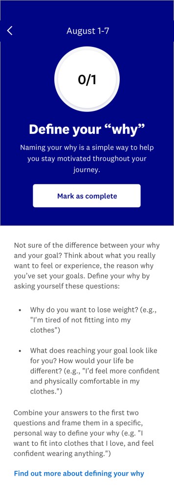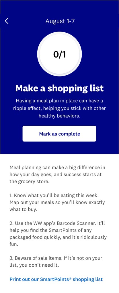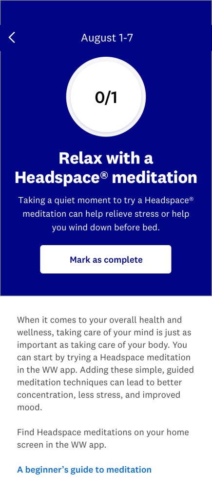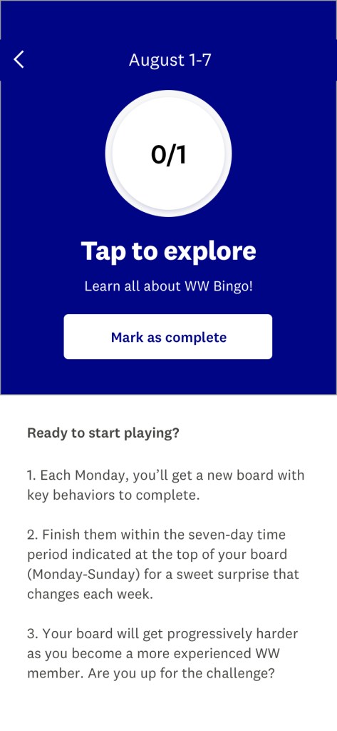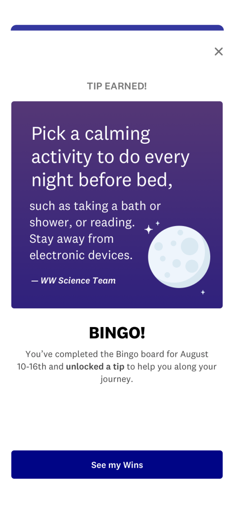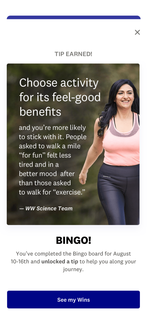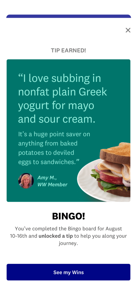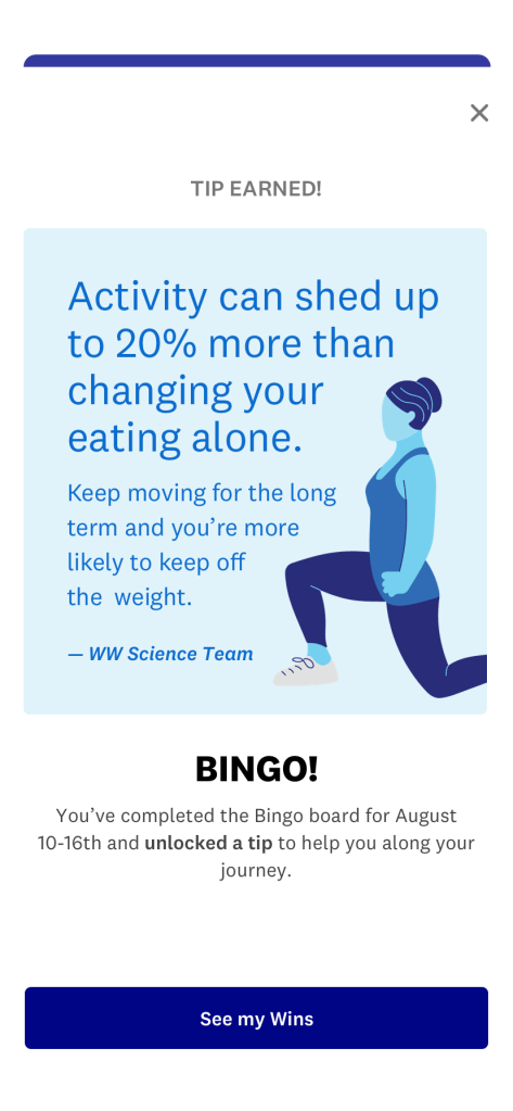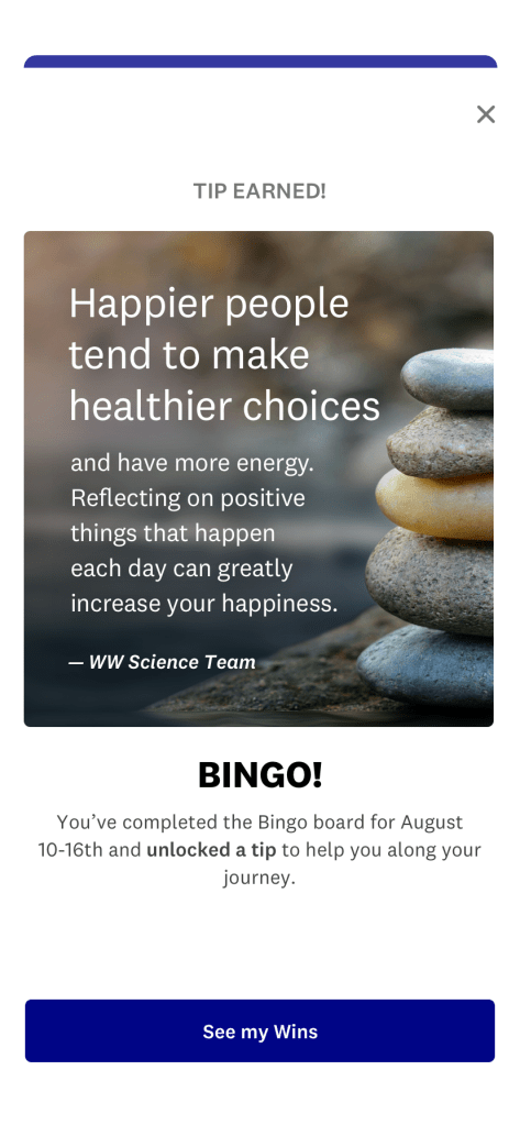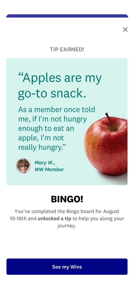 I wrote guest experience educational screens, launch copy for the myWW+ program, copy for WellnessWins Rewards, Streaks, and Bingo challenges, preview copy in the Apple App Store and Google Play Store, and more.